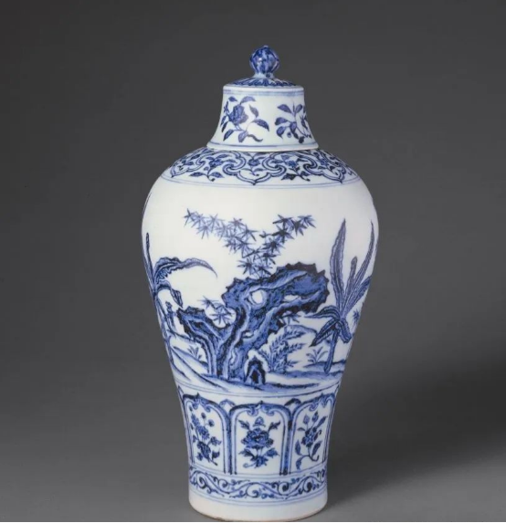 (明永乐 青花竹石芭蕉纹梅瓶)