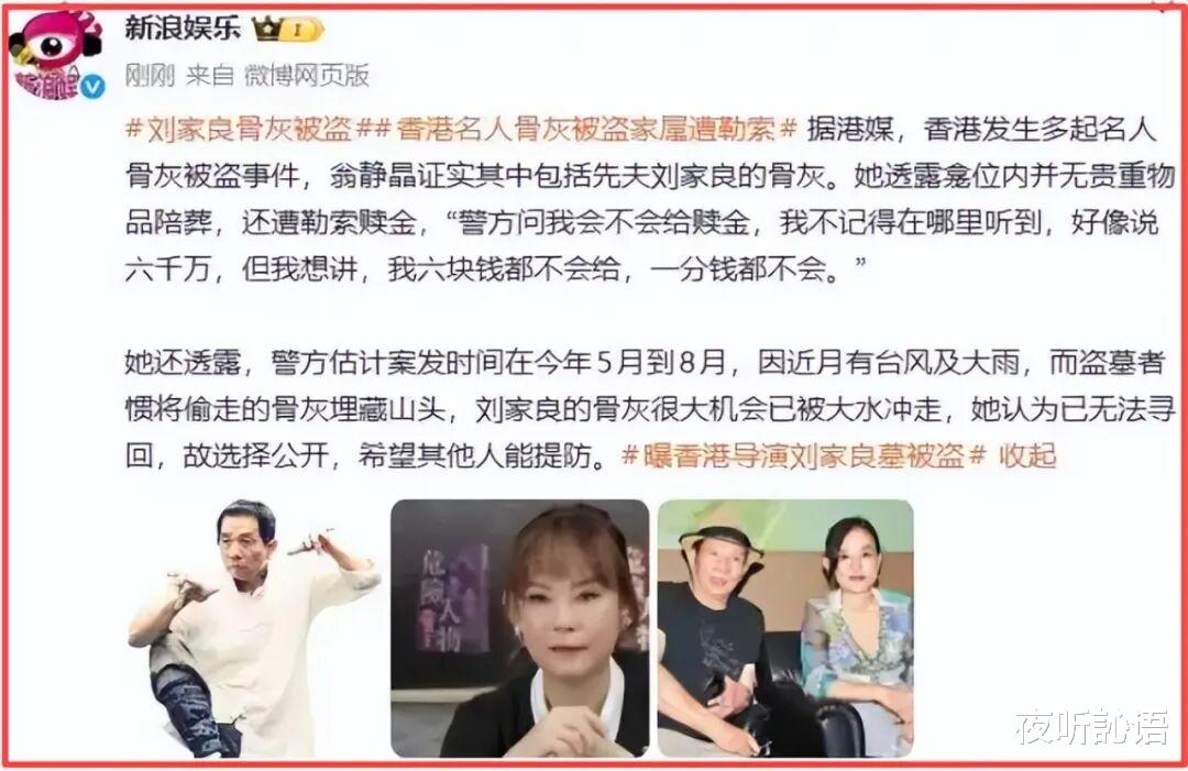 在几天后,警方给翁静晶打来电话,才得知,刘家良的骨灰确实是被人盗走了。