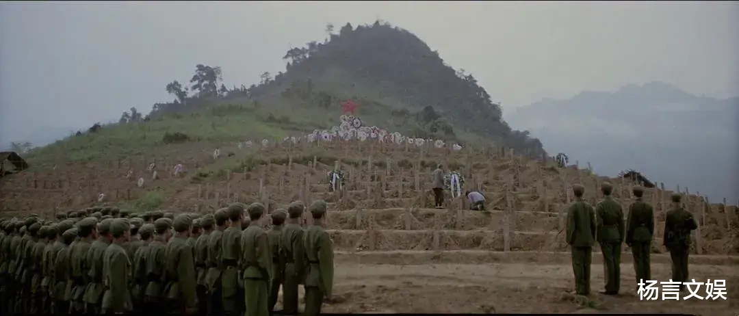 电影中反复出现的红土地意象,既是云南前线的真实地貌,更是被鲜血浸透的人性土壤。当梁三喜的妻子玉秀背着孩子步行几百里来扫墓,她在墓前轻轻放下的家乡煎饼,让战争记忆有了具体可感的温度。这种民间祭奠仪式与官方追悼会的并置,构建了完整的纪念维度。