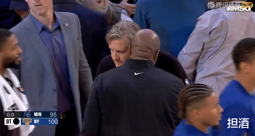 比赛结束,两队球员赛后很友好,在场上互相拥抱致意,唐斯更是来到森林狼替补席,和教练组成员拥抱致意,并且聊了起来。