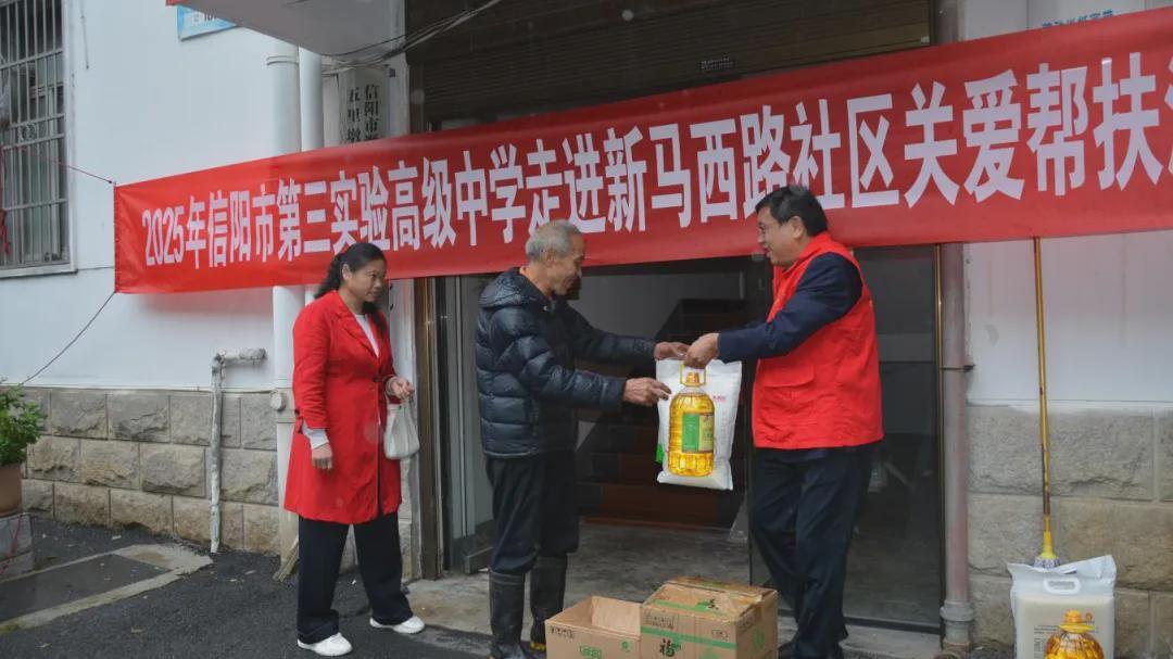 为充分发挥“支部联支部”互联互动作用,持续推动结对联建工作走深走实,进一步将支部联建工作落到实处,2025年9月29日上午,信阳市第三实验高级中学党总支书记陈世全带领党员教师来到结对的新马西路社区,开展“中秋送温暖”关爱帮扶活动。
