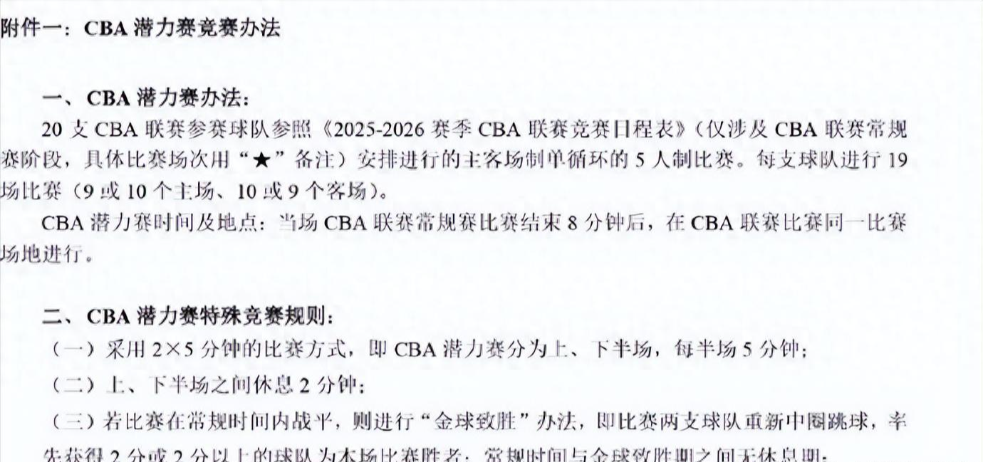 CBA新赛季的比赛规则又发生了新的变化,据媒体记者爆料,下赛季CBA的联赛将会新增一节第5节的比赛,叫做潜力赛。并且这个决定已经写在了CBA联赛的规则里面了,看来这是CBA自己新增的规定啊,并没有通过20支球队讨论的结果。对此媒体人纷纷表示不理解,新增的潜力赛是为何?