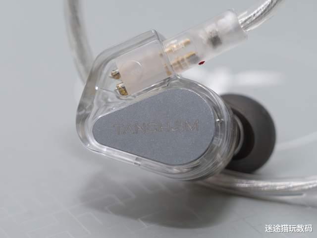 技术配置方面也是这款耳机的特点,采用自研定制级双腔式单元及PU悬边+PET基镀钛球顶复合振膜,构成复合声学亥姆霍兹共振腔,配合DMT 4 Ultra单动圈技术,1kHz下谐波失真<0.05%@94dB 。同时,运用低失真波导面盖技术、声腔内壁特殊处理技术及迷宫型通道设计,提升高频细腻度、极高频柔顺感和延伸性及低频深度与动态。
