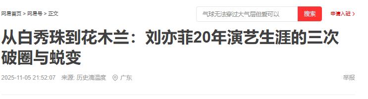 网易号:从白秀珠到花木兰:刘亦菲20年演艺生涯的三次破圈与蜕变