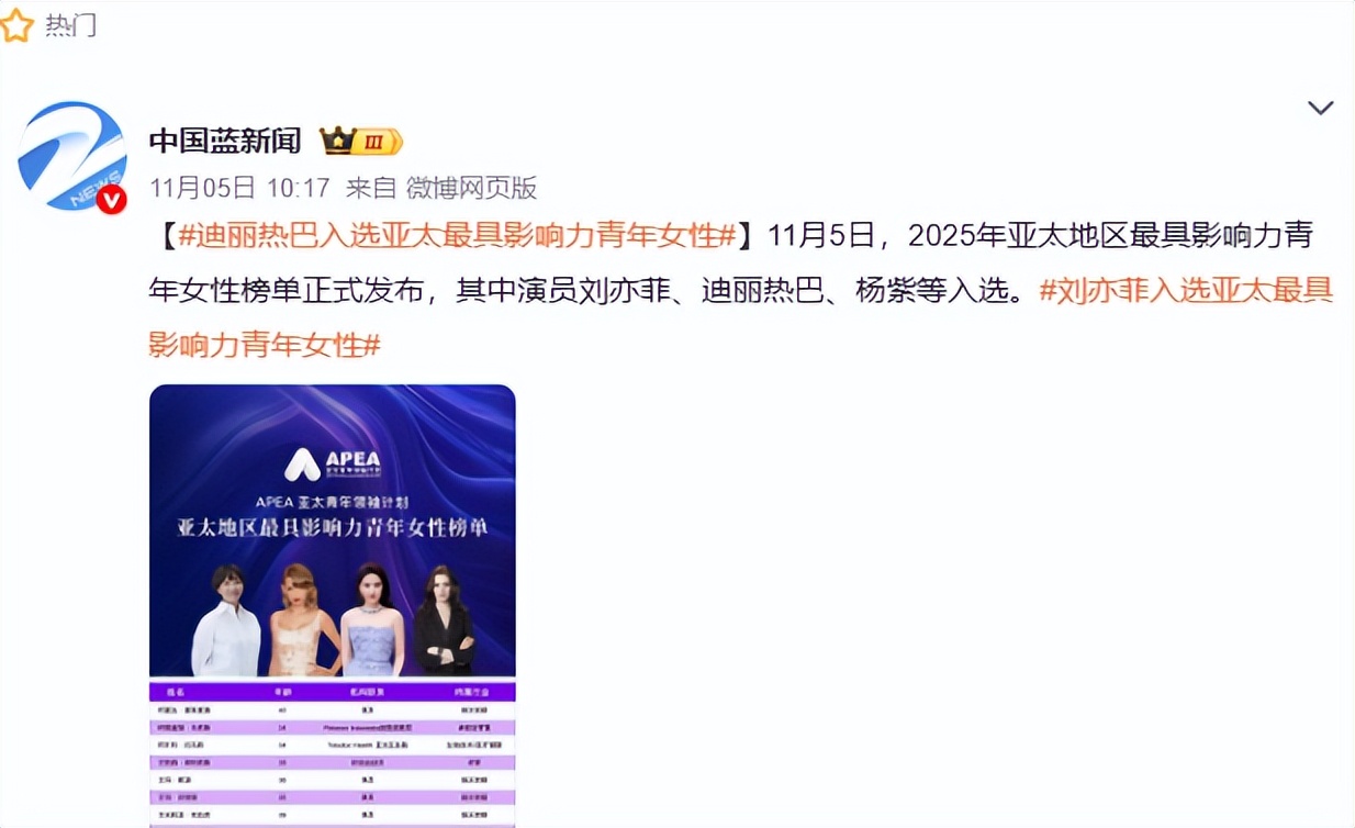 从“神仙姐姐”到亚太最具影响力青年女性,刘亦菲用鲜活角色与默默奉献证明价值。