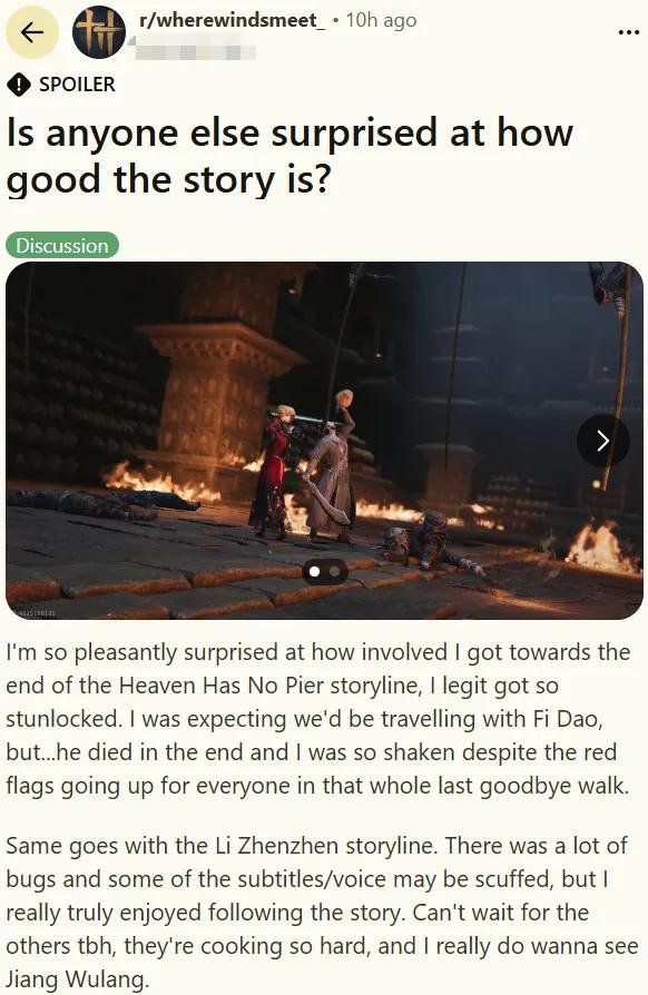 比如你会发现,外网上有人开始自发向海外玩家们科普那些文化了——武侠到底是什么?《燕云》的历史背景,又和这些有什么关系?虽然大概只是一小部分感兴趣的老外被吸引来看,但让人很欣慰的是,不少评论都用了“引人入胜”(captivating)这样的词,来形容他们了解到这些背景时的感受。