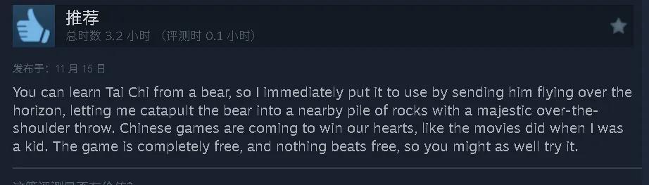 还有部分主播和外媒,在《燕云》的玩法中找到了乐趣:像是观察熊的动作学太极,跟着蛤蟆学蛤蟆功……对熟悉五禽戏的国人来说这很好接受,但老外碰上这事,第一反应几乎都是“Bro, what?”;