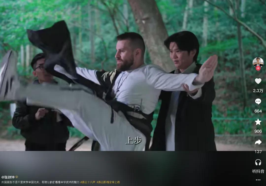 有了初见时的惊艳,自然就会有更多人心中的种子萌芽,推动他们进一步了解、学习这些文化。现在我们就能看到不少例子,比如有kol专门来找到中国师傅,向他学习无名剑法、太极拳;也有人去开封打卡,和中国少东家合照……