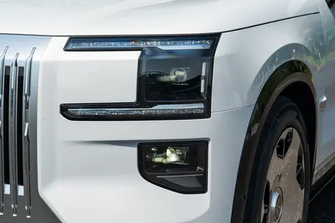 设计美学方面,极氪9X Ultra版展现出的旗舰气质。前脸设计灵感源自皇家宫殿台基,大尺寸直瀑式进气格栅搭配主动进气格栅与分体式大灯组,营造出庄重感。侧面采用ABC柱黑化处理,形成悬浮式车顶效果,D柱装饰板延伸至A柱增添了细节层次。车身配色提供极昼白、极夜黑、冰川银、暗夜紫、星穹灰五种选择,轮圈则为密条辐或整体熏黑样式,搭配285/45 R22规格的倍耐力P ZERO轮胎。车内提供极地白、月影蓝、琥珀棕三种内饰配色,中控区域采用异形仪表设计,搭配47英寸AR-HUD抬头显示与双17.6英寸3K悬浮屏,营造出科技与豪华兼具的氛围。