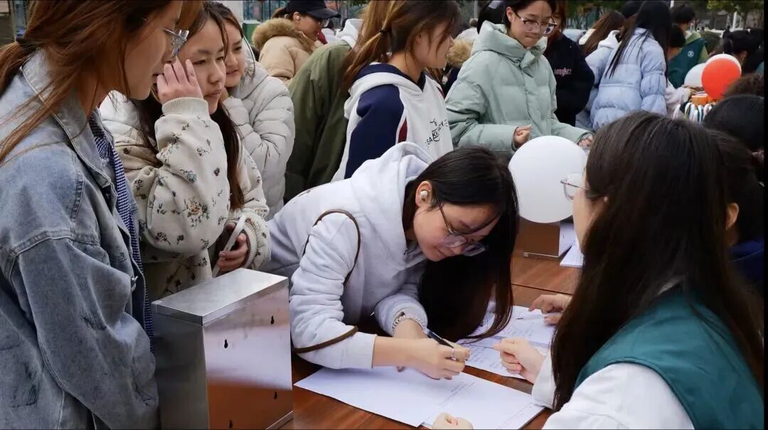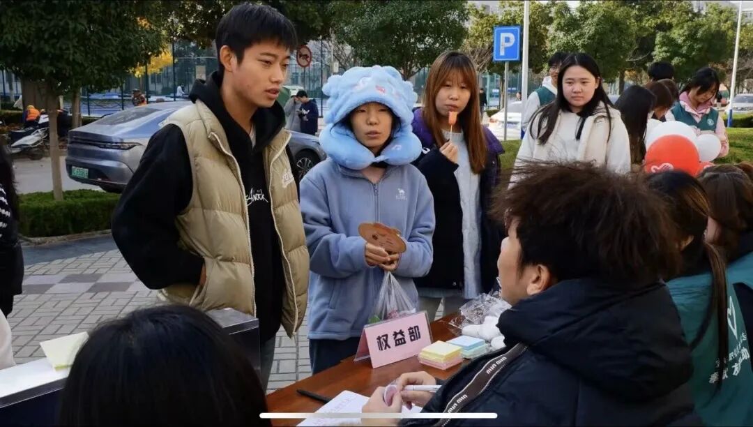 活动现场,志愿者们身着统一马甲,通过宣传展板、信息登记等形式,邀请同学们围绕食堂运营、宿舍设施、教学资源、校园环境等方面提出意见。从优化图书馆座位预约系统,到调整浴室开放时间……同学们的心声被一一记录并分类整理。现场还为提交有效建议的同学准备了精美小礼品,并设置多处“权益反馈信箱”,方便大家随时投递诉求。
