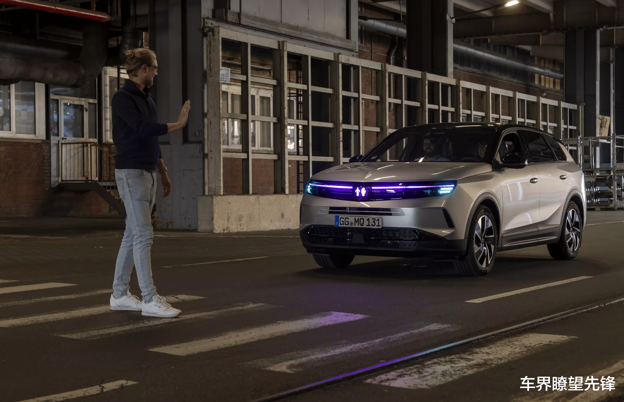 这款Grandland原型车能够通过车头的照明系统向车外的人传达自身的意图,以保证自身和周围事物的安全。