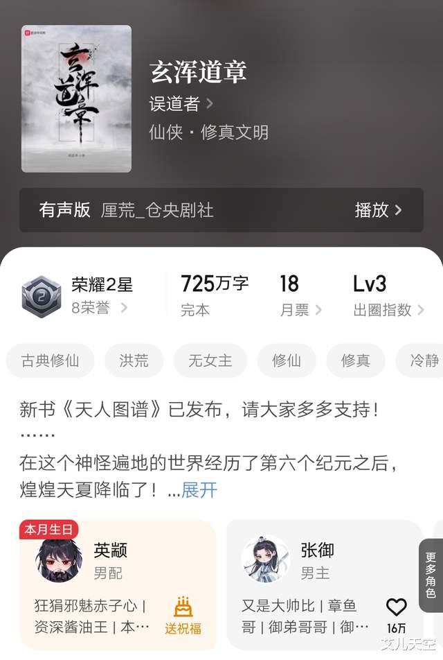 误道者的完结老书《玄浑道章》在完结两年十个月后破了万订。