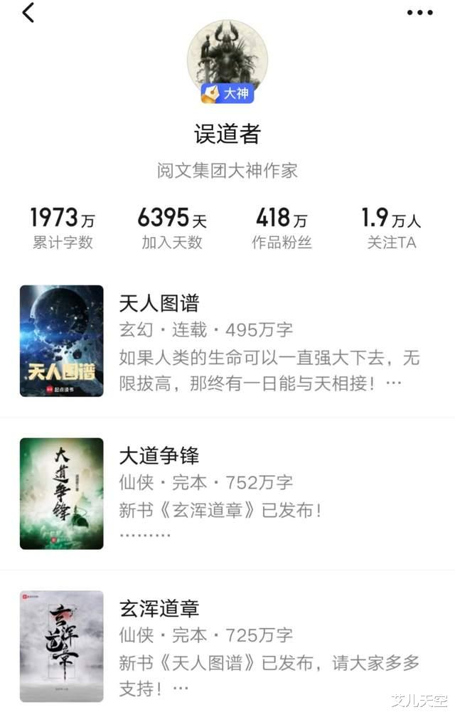 目前其名下三本小说《大道争锋》《天人图谱》《玄浑道章》就都是万订了,看着还是很齐整的。