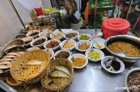 1.白粥+杂咸:潮州人的灵魂搭配!杂咸柜里摆着橄榄菜、萝卜干、甜豆腐、苦瓜等十几种腌菜,2元/碟任选。白粥不加调料,靠杂咸提味,一口粥一口菜,咸鲜交织,暖到胃里。