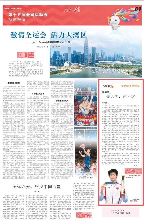 11月10日出版的《人民日报》(海外版),刊发了潘展乐的家书《先为国,再为家》。他对爸爸妈妈说:“全运会的比赛马上就要开始了,这段时间训练很紧张,我也在慢慢找回自己的节奏和状态。”