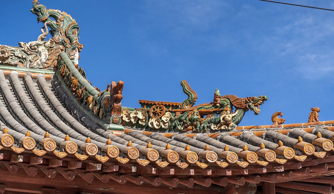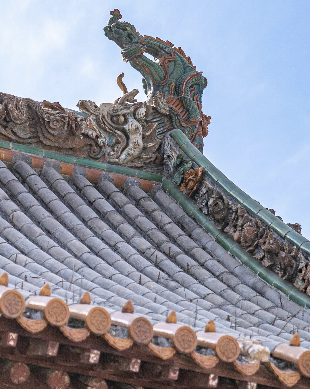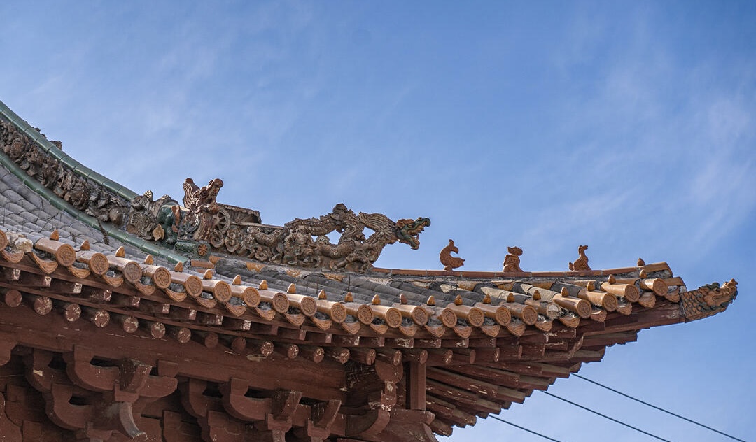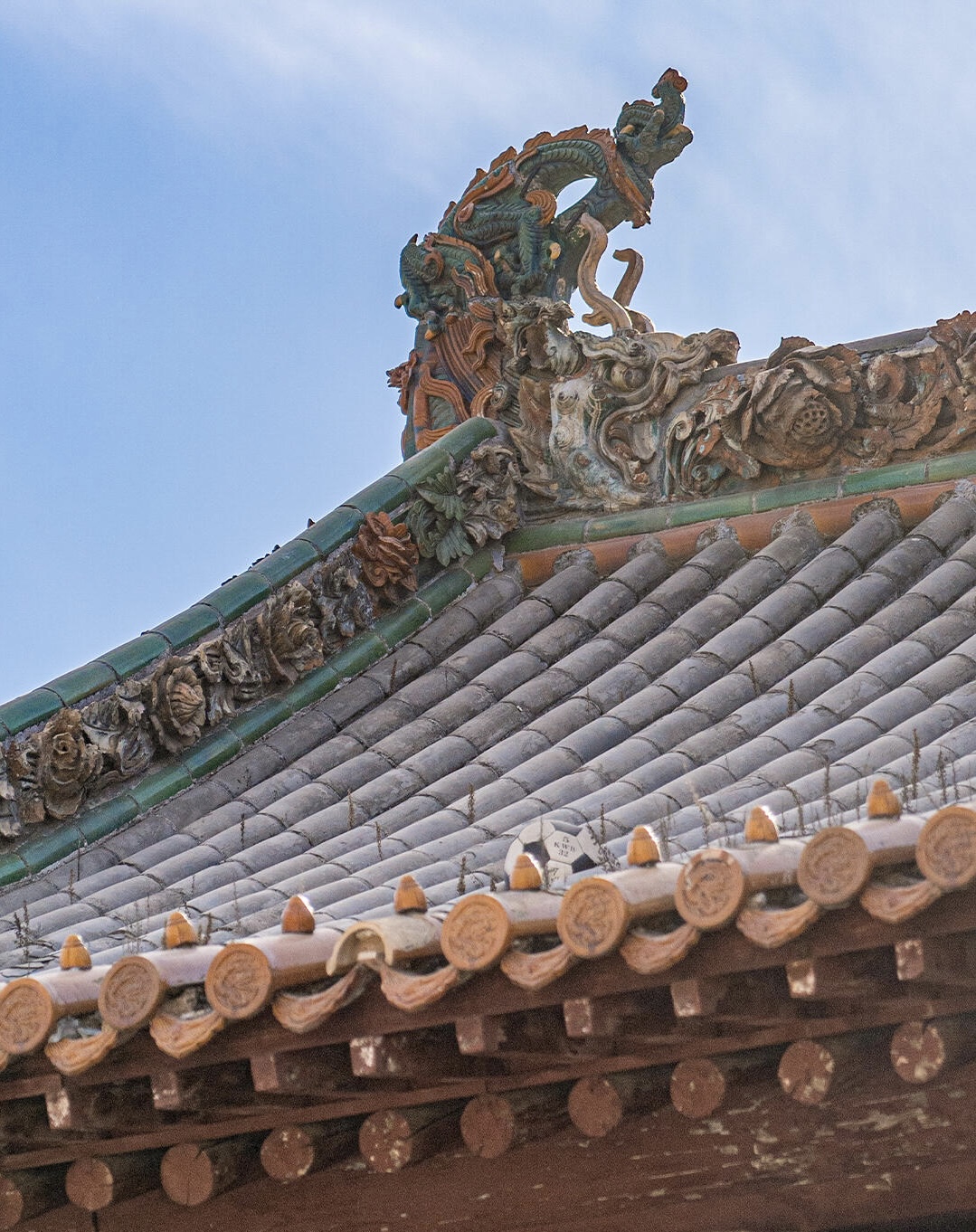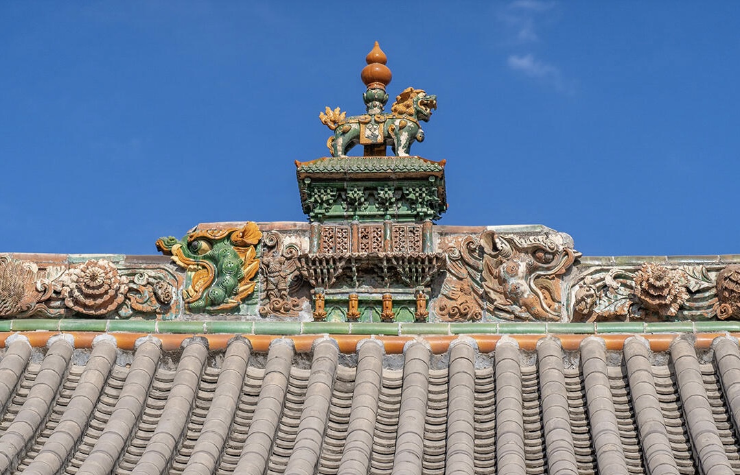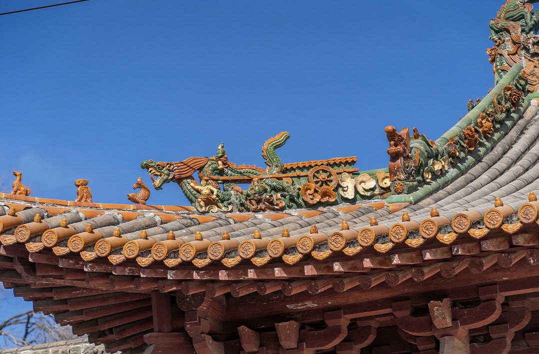 琉璃脊饰是另一部无声的编年史。正脊中央的琉璃宝刹,莲座上的龙纹呈现典型明代中期特征;而垂脊末端的戗兽,绿釉剥落处露出的陶胎却带有元代的粗犷风格。村民回忆,1942年日军强拆庙宇时,正是这些琉璃构件因过于沉重幸免于难,意外保留了最原始的工艺信息。