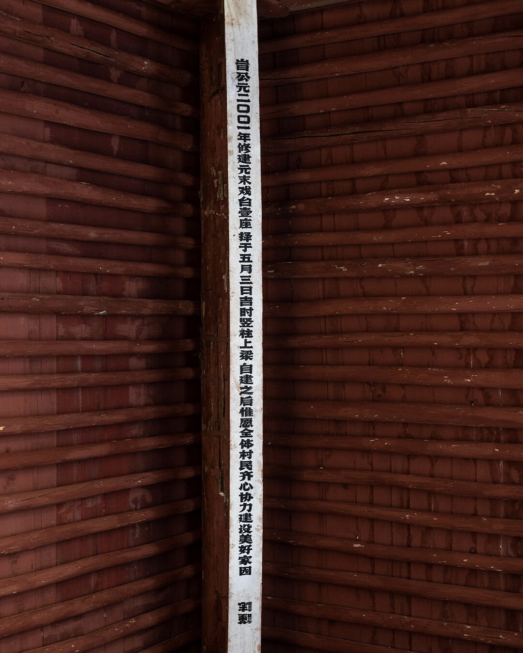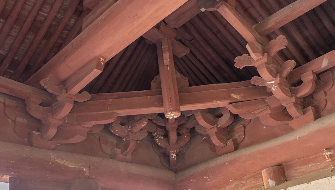 沿着青石巷道往村中心行走,会遇见一座红墙歇山顶建筑突兀地打破民居的灰调。这就是董封戏台——原泰山庙仅存的建筑遗存。元至正年间,当地望族在供奉武成王黄飞虎的庙宇中增建了这座表演场所。明万历四十年(1612年)的重建碑记,清嘉庆四年(1799年)扩建三面观抱厦的墨书题记,层层叠叠地书写在梁架之间,构成跨越四个朝代的建筑年鉴。