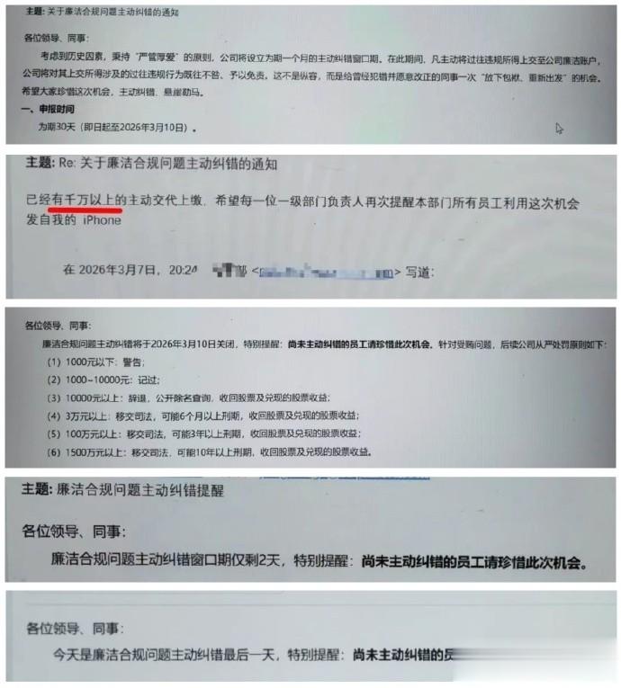 这招叫什么?叫“给你台阶下”。董事长朱江明还专门在3月8日抄送提醒了一次,3月10日系统又提醒了一次,生怕有人错过了这趟“上岸”的末班车。