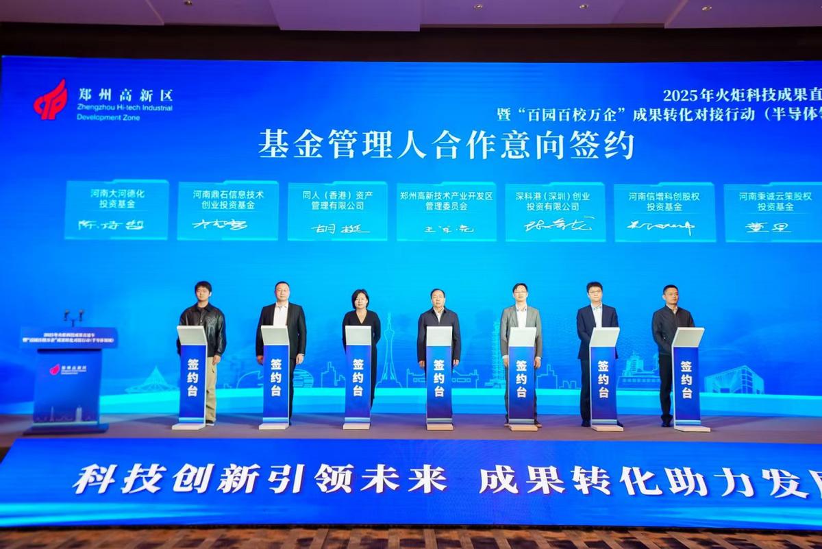 资本赋能与平台支撑是科技成果转化中不可或缺的环节。金融活水,润泽创新沃土,在基金签约环节,分别进行了郑州半导体科创投资基金意向签约,以及基金管理人合作意向签约,郑州高新区与深科港、同人资产、信增科创等多家知名投资机构达成合作,进一步壮大了高新区总规模超2000亿元的基金矩阵,为科技成果转化和产业发展提供强有力的资本引擎。为打通创新转化“中梗阻”,活动现场发布了关键平台服务清单,包括河南省微电子中试基地、郑州大学启明概念验证中心,为技术从实验室走向生产线提供专业化、全链条支撑。