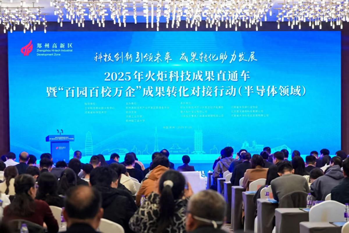 当实验室里的微光一次次被点亮,如何让它真正照亮产业的浩瀚星空?11月29日,一场聚焦半导体成果转化的盛会,2025年火炬科技成果直通车暨“百园百校万企”成果转化对接行动(半导体领域),在郑州高新区给出回应。作为“2025传感器大会”的重要活动之一,大会以“科技创新引领未来,成果转化助力发展”为主题,聚焦半导体前沿领域,搭建“政产学研金用”协同创新平台,推动科技成果从实验室走向生产线,助力区域经济高质量发展。