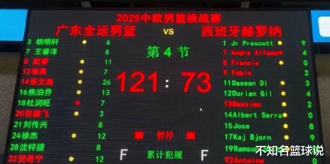 广东全运男篮结束全部热身赛,他们在热身赛收官战以121-73大胜西班牙赫罗纳男篮,全队5人得分上双,其中张文逸轰下全队最高的26分,且以6胜0负不败战绩结束热身赛。