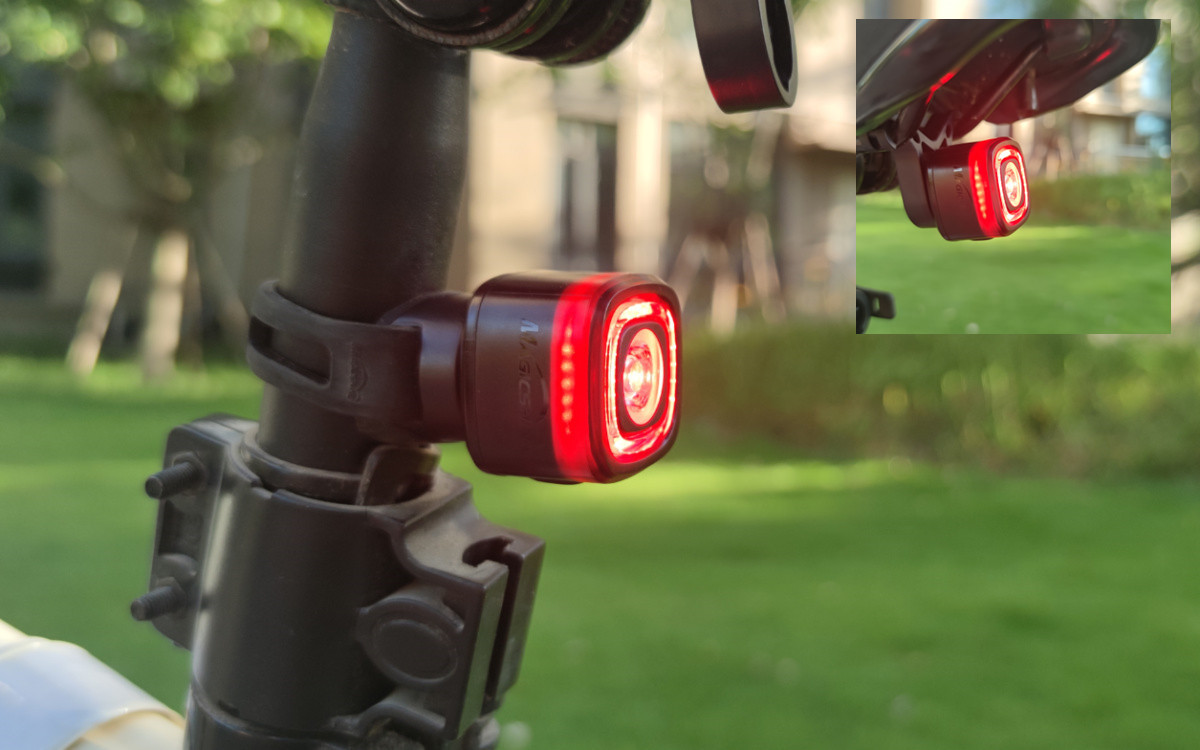 尾灯的部分基本上没有刻意设置,正常亮度呼吸闪烁即可。如果说是遇到复杂的路面,没有灯光,而且过往大货车比较多的时候会把尾灯调整成高亮度快闪模式。RN120支持8种不同的灯效模式,以及智能感应刹车、智能光照感应以及安全模式等。