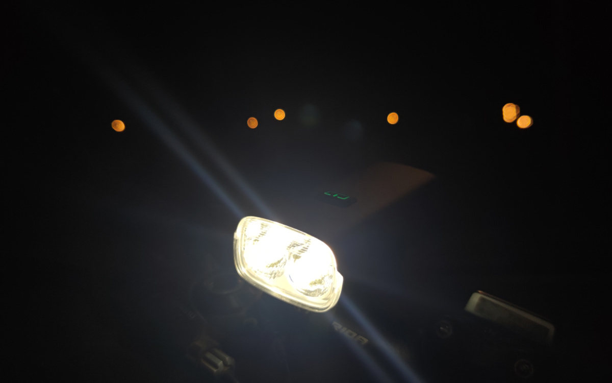 公路骑行的特点是大部分路段是有路灯的,甚至还有独立的自行车车道。所以一般情况我在光线还可以的路段都是双开第一档,听说这样比比较省电。如果遇到路段没有路灯,又或者道路货车较多的情况,会切换到更高档位的亮度。