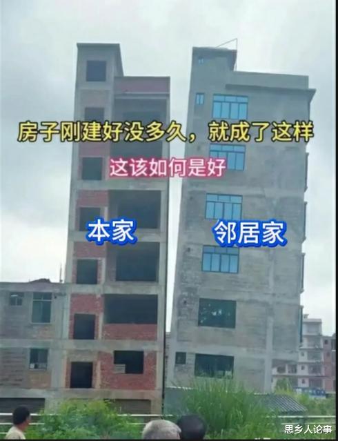 “本家”看到这种意外很担心,于是找到邻居,说他家房子歪了,邻居开始还不以为然,发现来看稀奇的人还真不少,于是警觉起来…