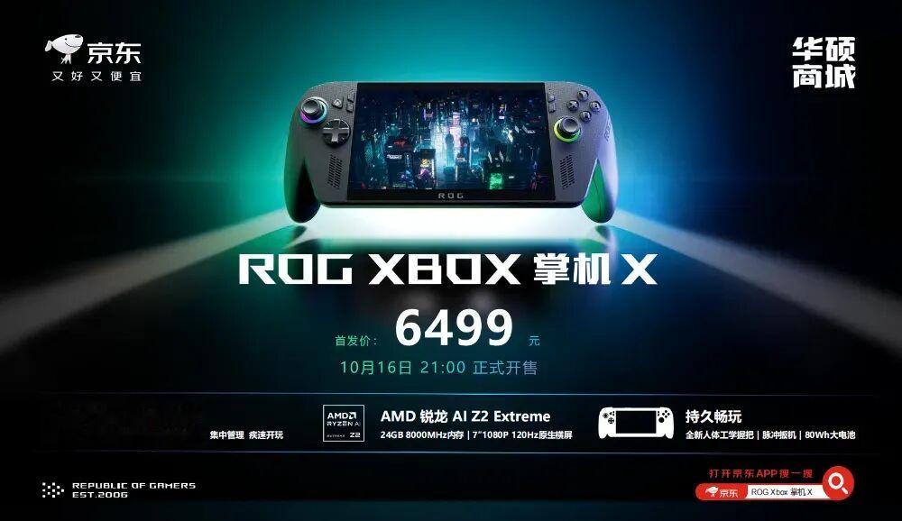 ROG XBOX掌机X现已正式开售,首发价6499元。