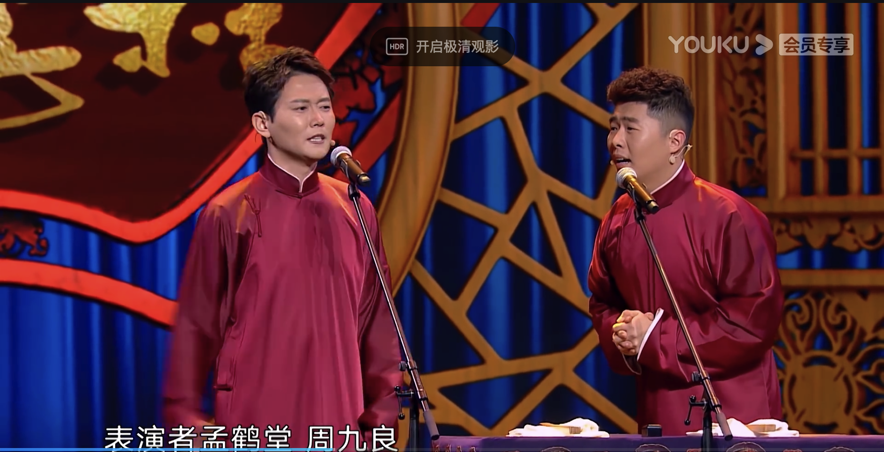 孟鹤堂,周九良,郭老师的得意弟子,19年火遍全国的 ''盘他'' ,就是这哥俩造的,这次的相声 ''蹭热点'',表演算是正常发挥,但是包袱还是不少的。加上原有的观众基础,也难怪无人敢挑战,直接晋级;