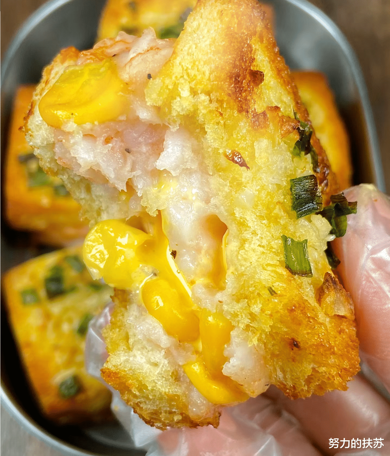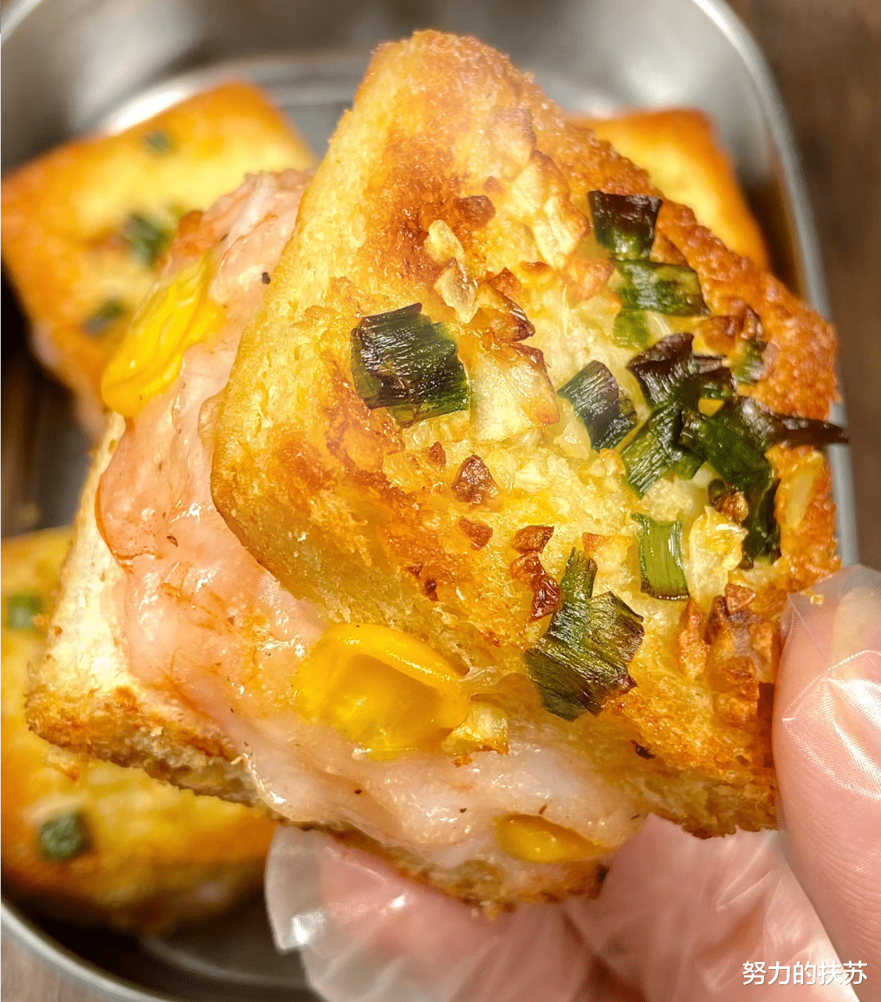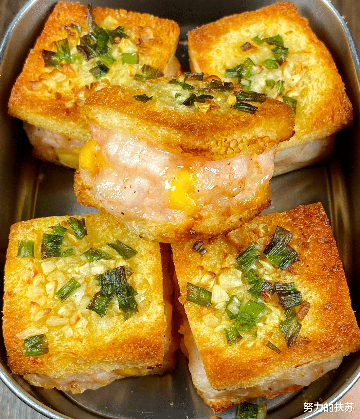 蒜香面包虾的主要食材包括新鲜的虾滑、玉米粒、葱蒜和吐司。这些食材的选择非常关键,它们决定了最终菜品的口感和风味。虾滑的鲜美、玉米粒的清甜、葱蒜的香气,以及吐司的酥脆,每一口都是对味蕾的极致诱惑。制作蒜香面包虾的步骤并不复杂。首先,将虾滑和玉米粒混合,加入适量的盐和黑胡椒碎搅拌均匀,这样可以确保虾滑的味道充分渗透进玉米粒中。然后,取一片吐司,去掉边缘后切成小块,铺上一层虾滑混合物,放上一片芝士片,再覆盖上一层虾滑混合物,最后盖上另一片吐司。这样,一份简易的面包虾就制作完成了。
