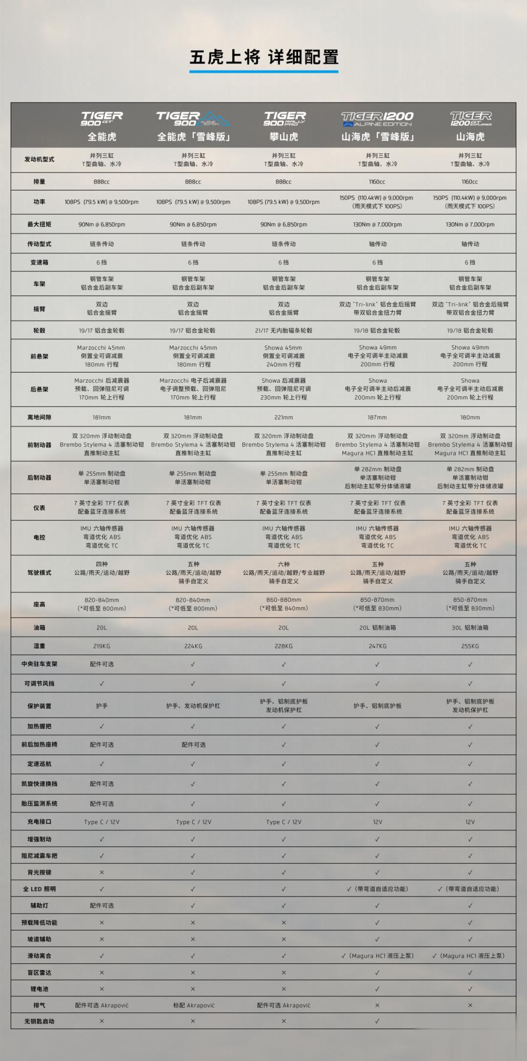 Tiger1200系列名称山海虎,取消发动机护杠,提高7mm离地间隙,减轻8kg。