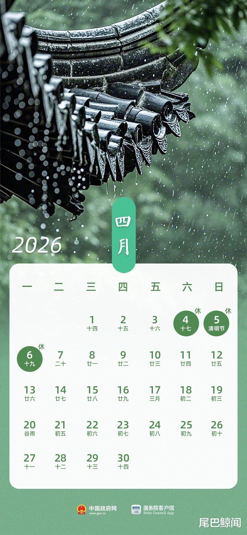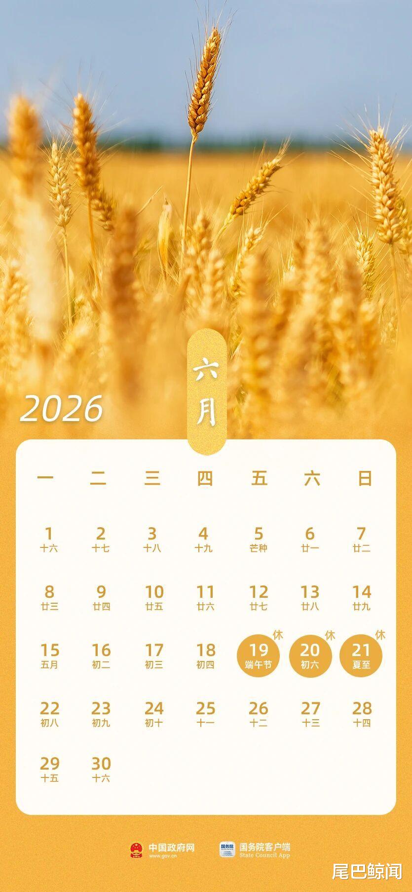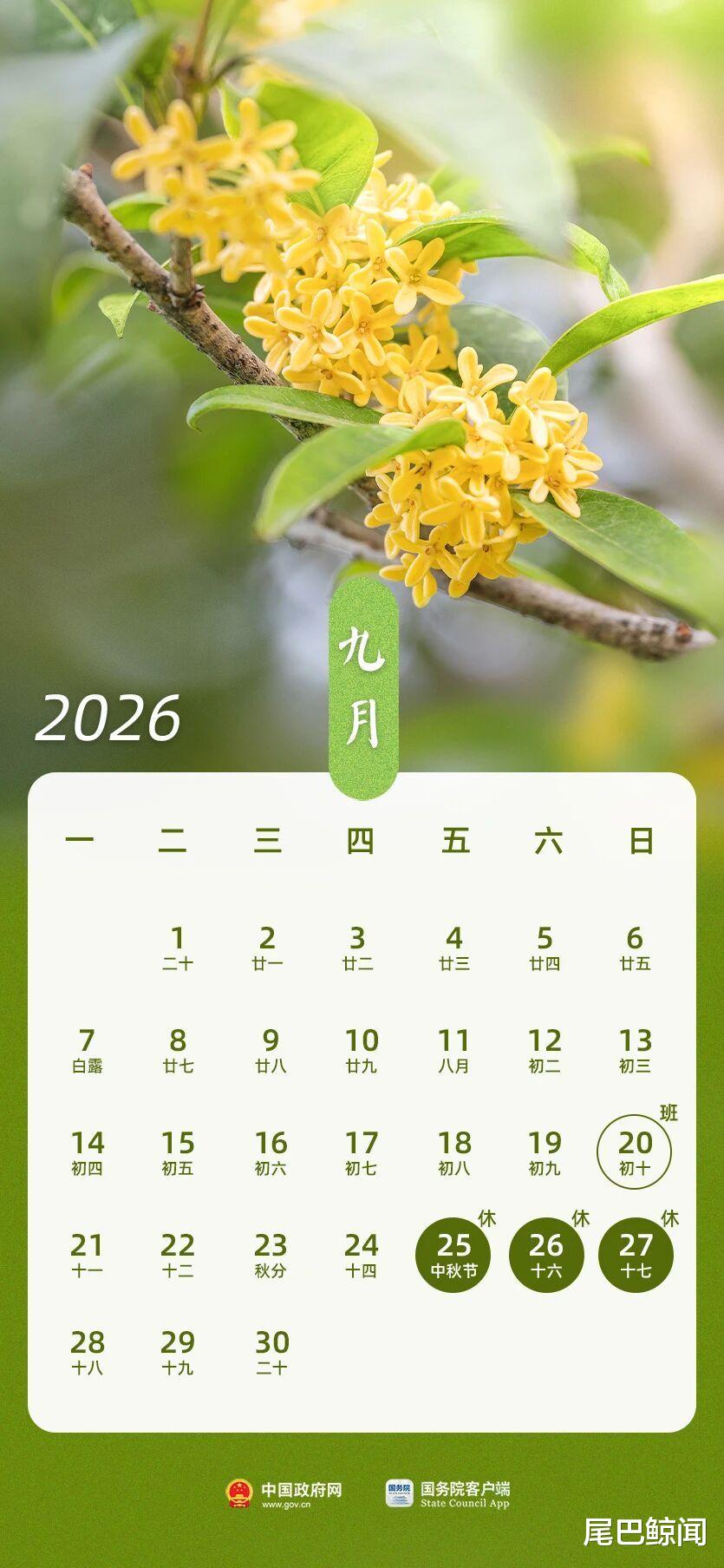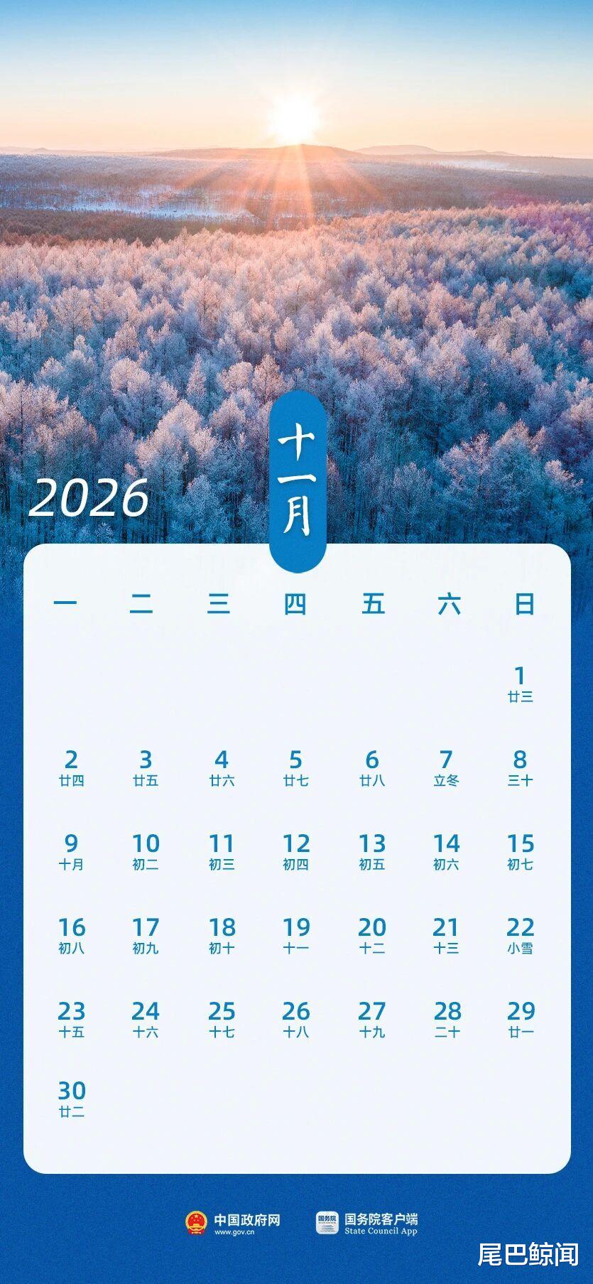 11月4日,国务院办公厅关于2026年部分节假日安排的通知发布。