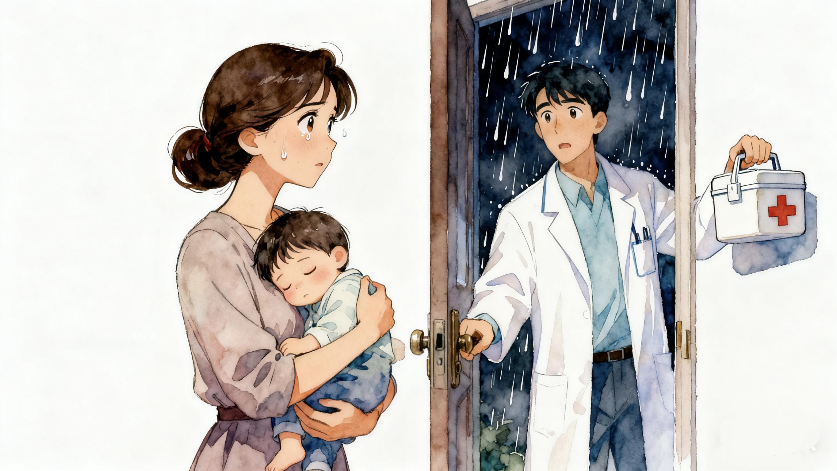 他穿着白大褂,手里拎着退烧药和听诊器,站在她家门口,像一道光。