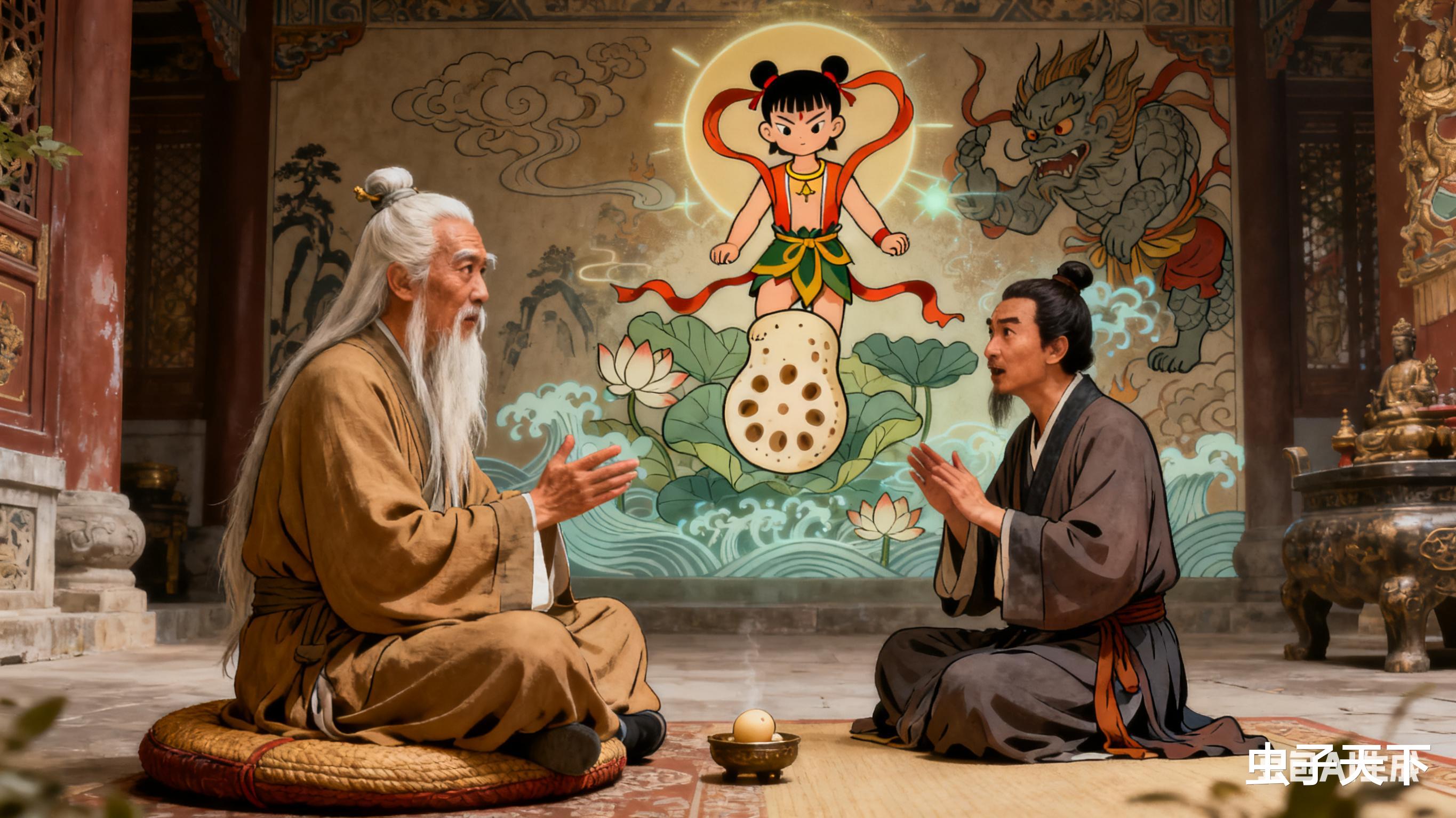 哪吒在井底,饿得前胸贴后背,妖性没炼掉,倒炼出一肚子委屈:“师父,您说护我,咋把我扔井里?”