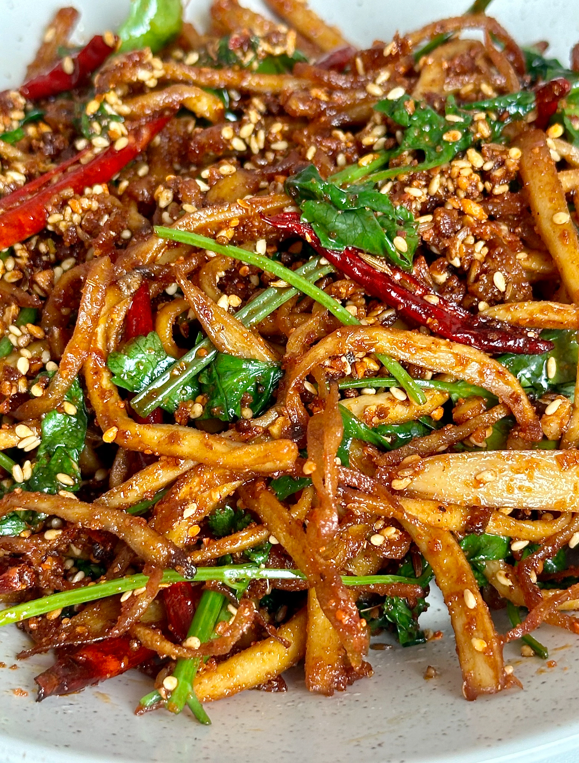 干煸杏鲍菇是一道能让素菜吃出肉香的家常美味,简直就是下饭神器
