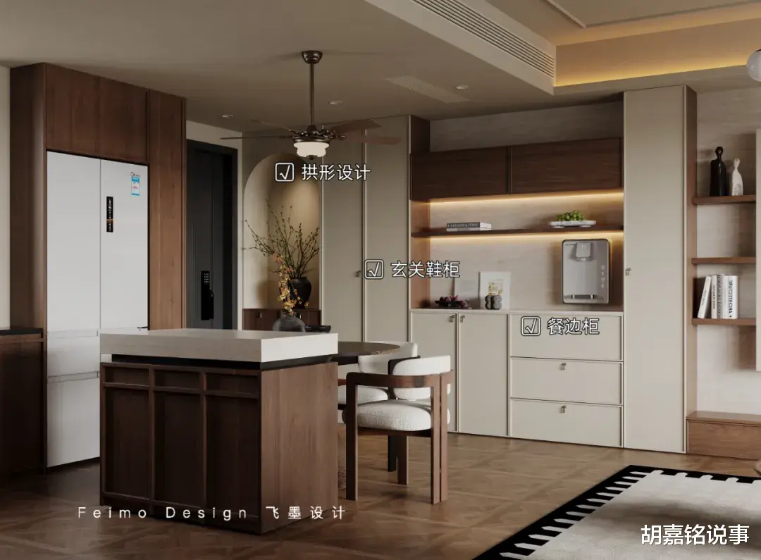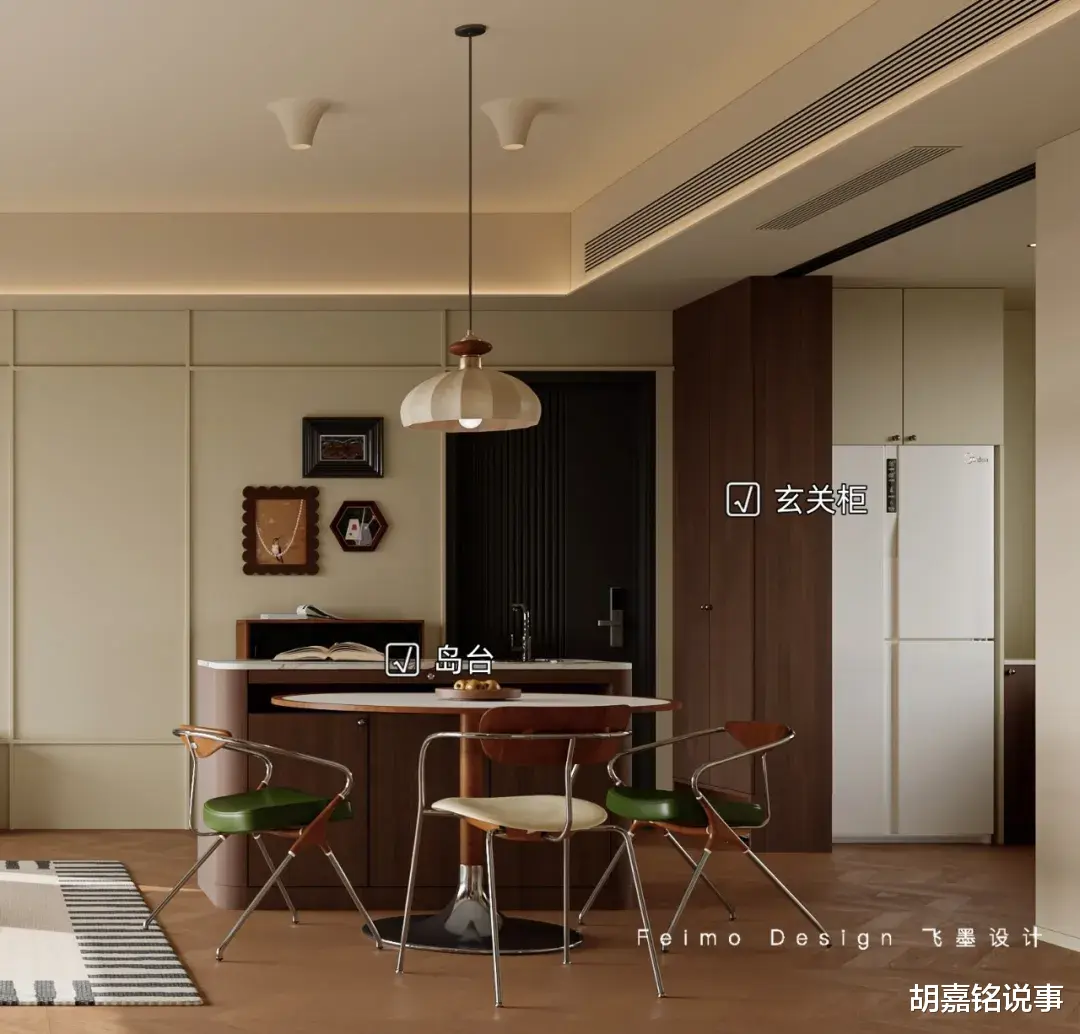 ③餐厅选择岛台+圆桌,可以增加收纳力,也可以作为西厨操作区使用。
