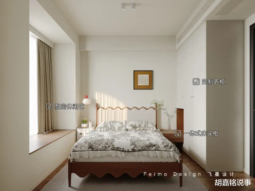 设计亮点:①次卧定制衣柜、床头柜,空间利用率高。②同样保留飘窗,可作为休闲区使用。