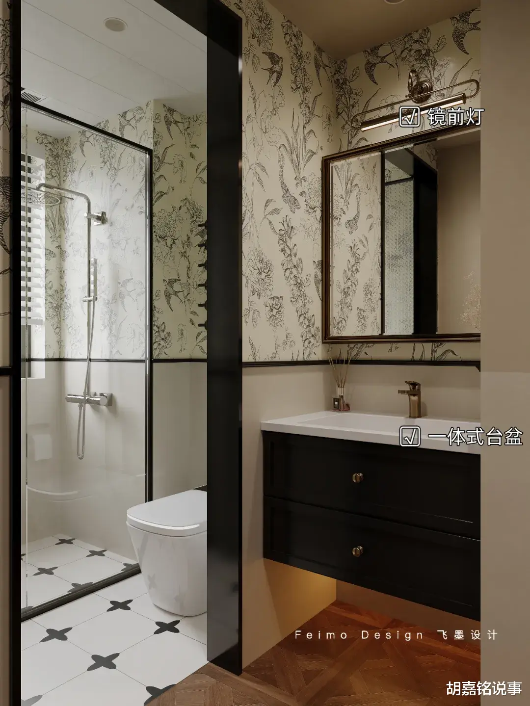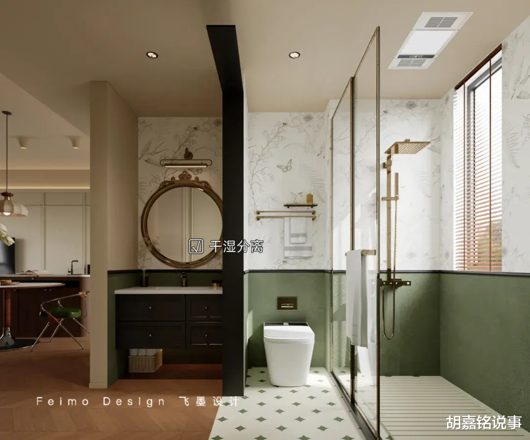 设计亮点:将卫生间的门洞移动至台盆区与马桶区之间,实现功能独立,提升卫生间利用率,解决干湿分离的问题。