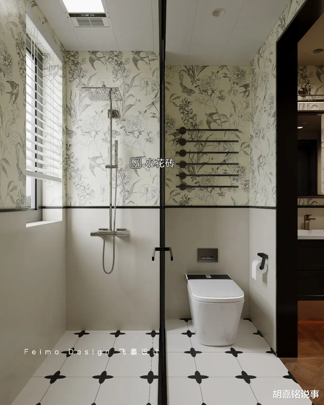 ③主卧与主卫之间的墙体增加玻璃砖隔断,提升通透度。