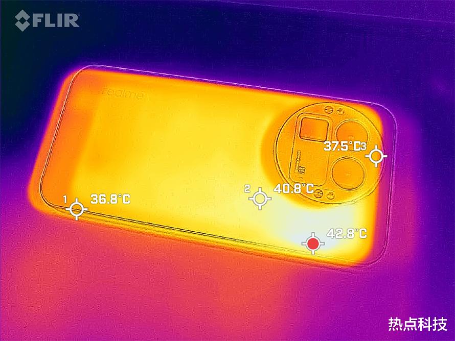 并且,不仅是稳,温度控制也是相当出色。同样30分钟《崩坏:星穹铁道》游戏之后,可以看到,无论是机身正面还是背面,最高温度都保持在40℃多一点,控制得还是相当不错的,这与GT8 Pro采用的7000mm²超覆盖冷锋VC散热是分不开的。当然,还有内置的超宽频脉冲马达和对称双扬系统,实现触感、声效与性能的全面协同。