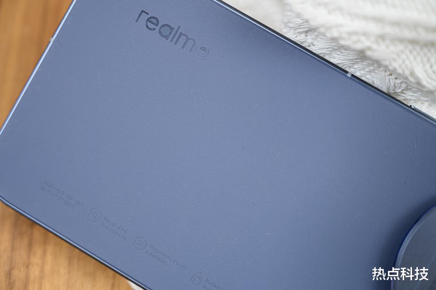 再来说说机身材质,这次真我GT8 Pro带来了AG玻璃与类纸再生皮革两种版本。其中我们这次拿到的布鲁配色,采用的就是这个类纸再生皮革,这一材质由回收纸浆与涤纶制成,有着独一无二的纹理感,而且它的触感轻盈柔滑,握持起来非常舒适。而在其表层还覆盖了亲肤有机硅涂层,耐磨耐污。