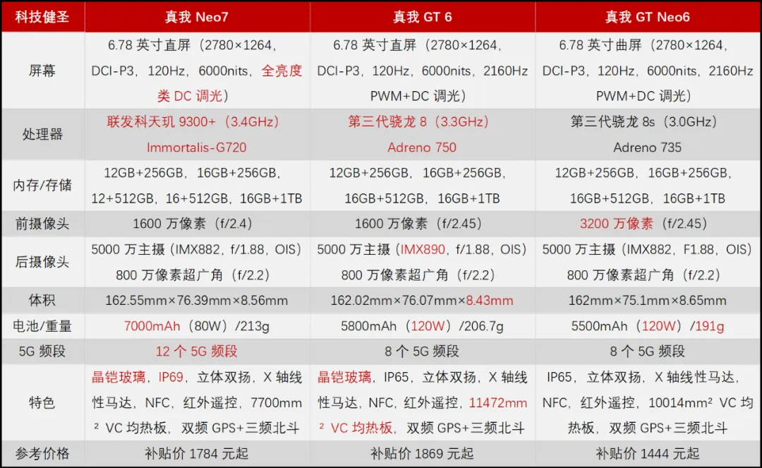 预算不足2K元 真我Neo7 真我GT 6和真我GT Neo6国补价谁更值?