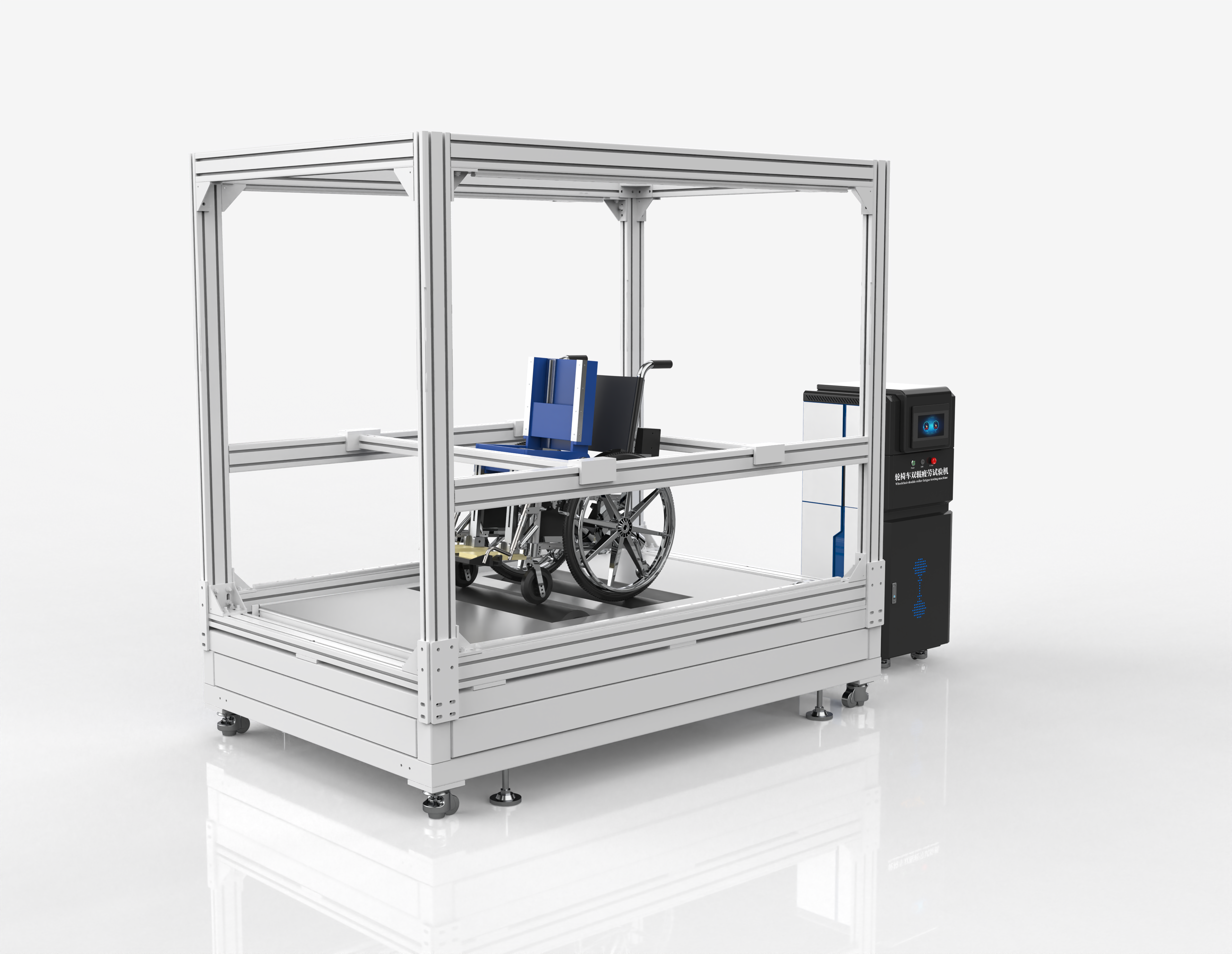 加载载荷: 通过配重或液压/电动伺服系统,对轮椅座面或车架施加一个垂直向下的力,模拟使用者的体重以及动态冲击。