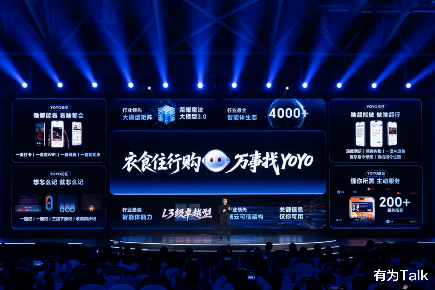在大模型底座层面,MagicOS 10告别单纯的端云协同模式,升级为面向智能体的进化方向,依托荣耀魔法大模型3.0构建个人化大模型能力,实现模型能力升维;系统框架层跳出传统资源性能调度逻辑,转向AI智能体能力调度,让系统内核更具智慧决策力;智慧互联层打破设备边界,从跨设备互联升级为跨智能体互联,使不同终端的服务能主动协同;系统应用层摆脱“指令依赖+被动响应”的局限,进化为可理解用户意图并自主决策的智能体形态,服务效率大幅提升;人机交互层则突破传统图形界面(GUI)束缚,走向多模态自然交互,让操作更贴近日常沟通习惯。