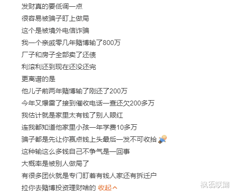 更不要提那些暴富之后,陷入赌博吸毒无底洞,输的一干二净之后,还债无门自己也变成了诈骗者;