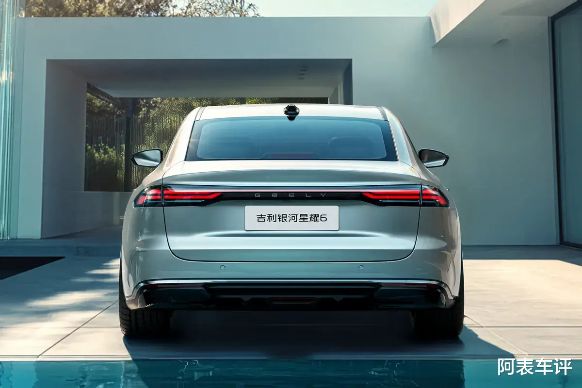 从设计来看,星耀6延续了银河家族“涟漪美学”设计语言。前脸配备“银河星瀑”格栅,由29道纵向镀铬饰条构成,搭配细长的前灯组和间断式日行灯,营造出宽阔的视觉效果;车身侧面采用溜背造型与双腰线设计,配备传统门把手和16/17英寸轮毂;车尾的贯穿式灯组由206颗LED灯珠组成,搭配隐藏式排气布局,整体风格简洁饱满。此外,新车提供沁釉蓝、丝锦银等五种车身颜色,满足不同用户的审美需求。