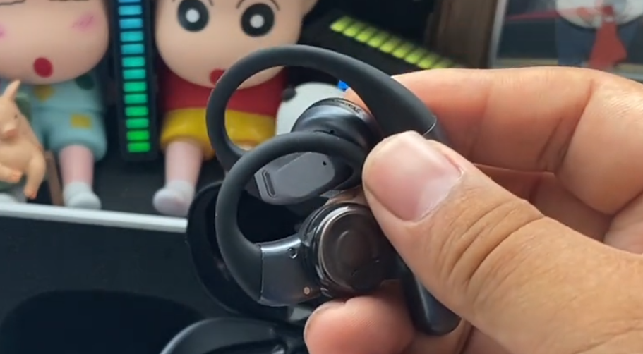 佩戴上,稳固性很出色,内嵌的是钛合金丝的天鹅颈耳挂,重量均称,上耳形成稳定的三角结构,贴合耳轮的曲线,一挂即稳。戴着去跑马拉松、骑行过颠簸路段或是原地跳绳,耳机都是牢牢固定的,而且亲肤的液态硅胶材质久戴也无压迫感。
