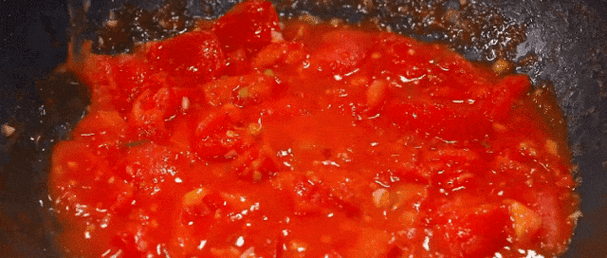 · 倒入番茄丁,中火翻炒至软烂出沙