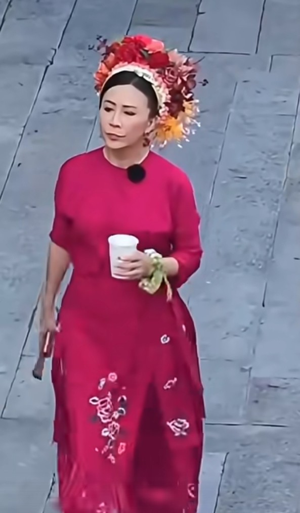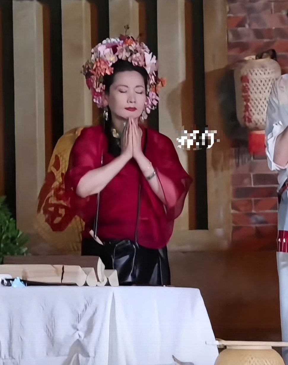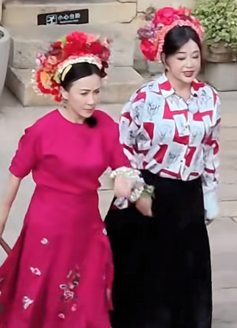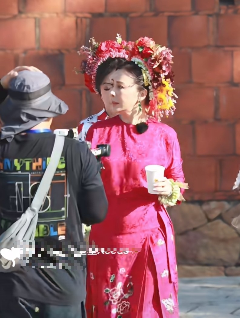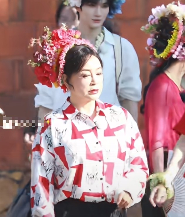 刘嘉玲的气场也很足,即便戴着簪花也很有女王范儿,但实话实说,红花配红衣,这套造型真的很像扭大秧歌的。